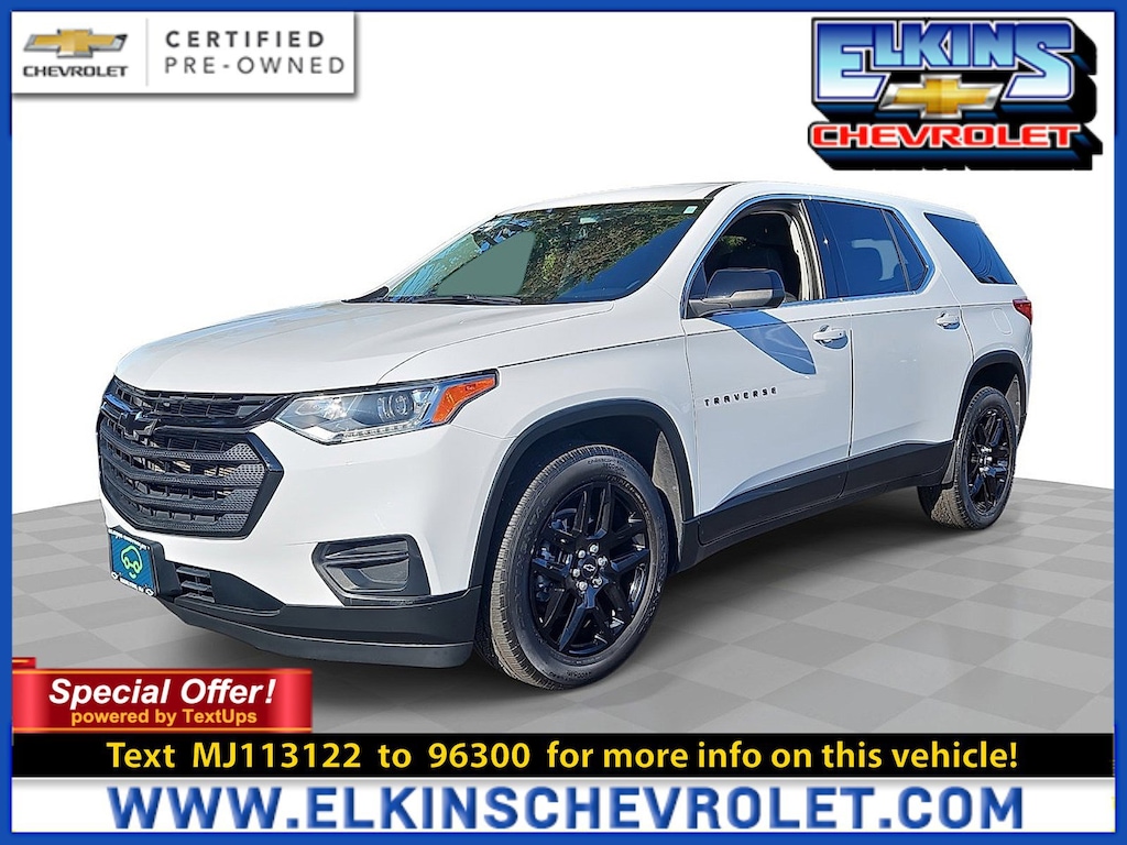 * CHECK OUT THIS BLACKOUT PACKAGE CHEVY TRAVERSE W/ 8 PASSENGER SEATING * BACKUP CAMERA * CLEAN CARFAX * CARBRAVO CERTIFIED * CHEVY INFOTAINMENT 3 W/ 7 INCH COLOR TOUCH SCREEN * APPLE CARPLAY AND ANDROID AUTO * 20 INCH BLACK ALUMINUM WHEELS * 8-Passenger Seating (2-3-3 Seating Configuration), Apple CarPlay/Android Auto, Black Finish Grille (LPO), Black Rear License Plate Applique (LPO), Blackout Package (LPO), Front & Rear Black Bowtie Emblems (LPO), Gloss Black Emblem Kit (LPO), Preferred Equipment Group 1LS, Radio: Chevrolet Infotainment System AM/FM Stereo, Wheels: 20" Gloss Black Painted Aluminum (LPO). Clean CARFAX. Summit White Traverse LS FWD 9-Speed Automatic 3.6L V6 SIDI VVT Certified. Certification Program Details: Eligible CarBravo-Certified vehicles will receive a 6-month/6,000-mile (whichever comes first) limited bumper to bumper warranty.