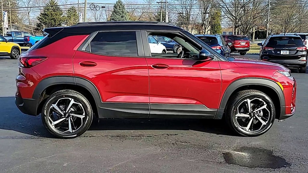 * CHECK OUT THIS LOW MILEAGE AWD CHEVY TRAILBLAZER RS!! * 1 OWNER CLEAN CARFAX * PANORAMIC SUNROOF * HEATED BUCKET SEATS * HEATED STEERING WHEEL * REMOTE START * BACKUP CAMERA * POWER SEAT * CHEVY INFOTAINMENT 3 * BLUETOOTH * XM RADIO * APPLE CARPLAY AND ANDROID AUTO * POWER LIFTGATE * FORWARD COLLISION ALERT * LANE KEEP ASSIST * LANE DEPARTURE WARNING * FRONT PEDESTRIAN BRAKING * REAR CROSS TRAFFIC ALERT * LANE CHANGE ALERT * SIDE BLIND ZONE ALERT * 18 INCH HIGH GLOSS BLACK ALUMINUM WHEELS * 1 Type-A & 1 Type-C USB Charging-Only Ports, 120-Volt Power Outlet, 6-Speaker Audio System Feature w/Amplifier, 7" Diagonal Color Touchscreen, 8-Way Power Driver Seat Adjuster, 8" Diagonal Color Touchscreen Display, Cabin Humidity Sensor, Cloth w/Leatherette Seat Trim, Confidence II Package, Convenience Package, Driver & Front Passenger Illuminated Vanity Mirrors, Dual-Pane Panoramic Power Sunroof, Exterior Parking Camera Rear, Front Bucket Seats, Hands-Free Power Programmable Liftgate, Heated door mirrors, Heated Driver & Front Passenger Seats, Heated Steering Wheel, Inside Rear-View Auto-Dimming Mirror, Mosaic Black Metallic Two-Tone Roof, Power door mirrors, Preferred Equipment Group 1RS, Radio: Chevrolet Infotainment 3 System, Rear Park Assist, Ride & Handling Suspension, Single-Zone Auto Climate Control Air Conditioning, SiriusXM Radio, Sun & Liftgate Package, Traction control, Wheels: 18" High Gloss Black Machined Aluminum, Wireless Apple CarPlay/Android Auto. CARFAX One-Owner. Clean CARFAX. Crimson Metallic TrailBlazer RS AWD 9-Speed Automatic 1.3L Ecotec Turbo DOHC SIDI w/VVT Certified. Certification Program Details: Eligible CarBravo-Certified vehicles will receive a 6-month/6,000-mile (whichever comes first) limited bumper to bumper warranty.
