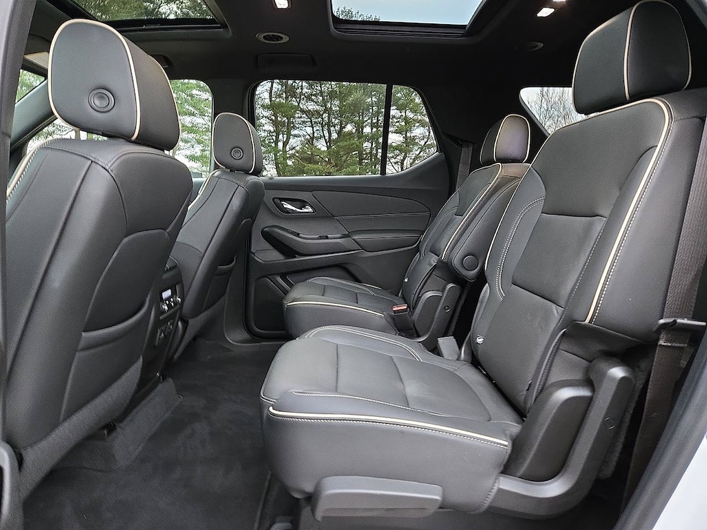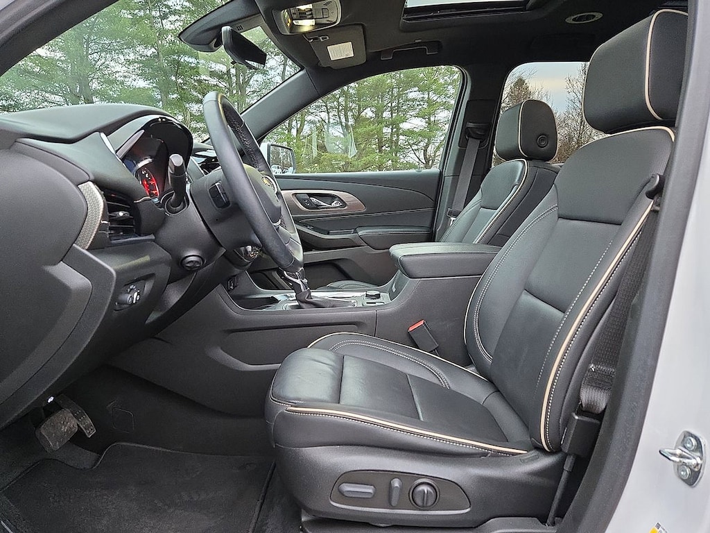 * CHECK OUT THIS LOADED CHEVY TRAVERSE PREMIER!! * 3.6L V6 AWD!! * NAVIGATION * DUAL SKYSCAPE SUNROOF * HEATED/ VENTILATED LEATHER BUCKET SEATS * HEATED 2ND ROW BUCKET SEATS * 7 PASSENGER SEATING * HEATED STEERING WHEEL * REMOTE START * ADAPTIVE CRUISE CONTROL * HD SURROUND VISION * BACKUP CAMERA * BOSE AUDIO * 1 OWNER CLEAN CARFAX * 20 INCH POLISHED ALUMINUM WHEELS * POWER LIFTGATE * TRAILERING PACKAGE * FORWARD COLLISION ALERT * REAR PARK ASSIST * REAR CROSS TRAFFIC ALERT * LANE KEEP ASSIST * LANE DEPARTURE WARNING * LANE CHANGE ALERT * SIDE BLIND ZONE ALERT * FRONT PEDESTRIAN BRAKING * AWD, 6-Way Power Front Passenger Seat, 8-Way Power Driver Seat Adjuster, Apple CarPlay/Android Auto, Bose Premium 10-Speaker Audio System Feature, Dual SkyScape 2-Panel Power Sunroof, Exterior Parking Camera Rear, Heated 2nd Row Outboard Position Seats, Heated door mirrors, Heated Driver & Front Passenger Seats, Heated steering wheel, Navigation System, Perforated Leather-Appointed Seat Trim, Power door mirrors, Power Driver Lumbar Control, Power Liftgate, Preferred Equipment Group 1LZ, Radio: Chevrolet Infotainment 3 Plus System w/Navi, SiriusXM w/360L, Ventilated Driver & Front Passenger Seats, Wheels: 20" Metallic Machined-Face Aluminum. CARFAX One-Owner. Clean CARFAX. Iridescent Pearl Tricoat Traverse Premier AWD 9-Speed Automatic 3.6L V6 SIDI VVT Certified. Certification Program Details: Eligible CarBravo-Certified vehicles will receive a 6-month/6,000-mile (whichever comes first) limited bumper to bumper warranty.