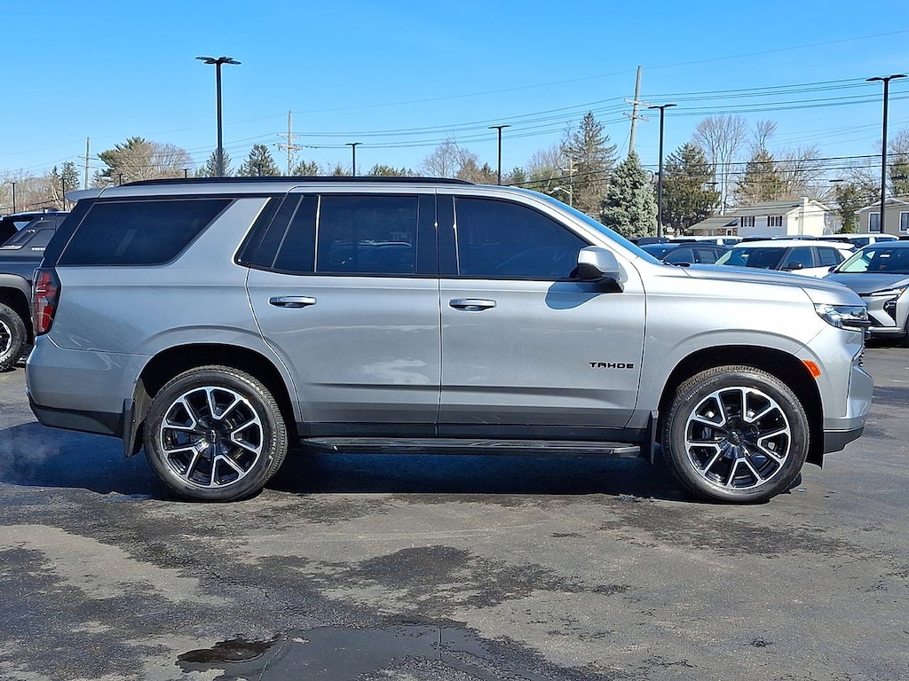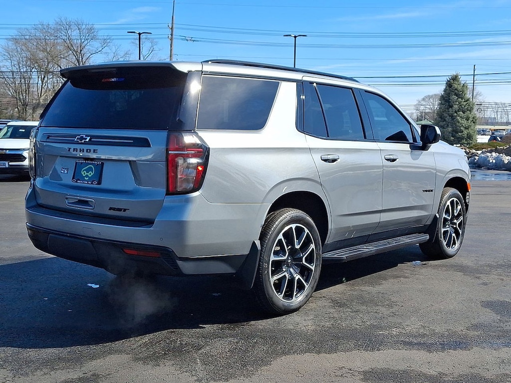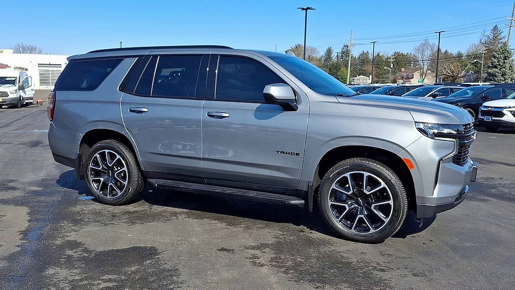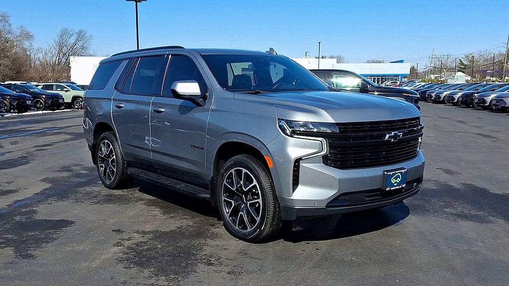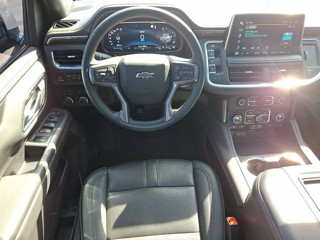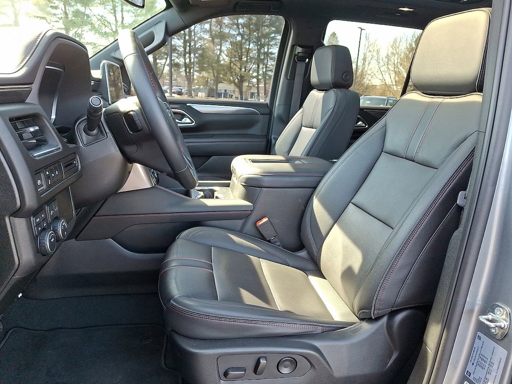 * CHECK OUT THIS SPORTY CHEVY TAHOE RST!! * 5.3L V8 4X4!! * CHEVY INFOTAINMENT 3 PREMIUM SYSTEM W/ GOOGLE BUILT IN NAVIGATION * PANORAMIC SUNROOF * HEATED LEATHER BUCKET SEATS W/ CONSOLE * 2ND ROW BENCH * 3RD ROW SEATS * BOSE AUDIO * XM RADIO * APPLE CARPLAY AND ANDROID AUTO * REMOTE START * BACKUP CAMERA * 22 INCH ALUMINUM WHEELS * POWER LIFTGATE * TRAILERING PACKAGE * FRONT PEDESTRIAN BRAKING * FORWARD COLLISION ALERT * LANE KEEP ASSIST * LANE DEPARTURE WARNING * FRONT AND REAR PARK ASSIST * 4WD * Jet Black/Victory Red Leather, 10-Way Power Driver & Passenger Seat Adjusters, 1st & 2nd Row Color-Keyed Carpeted Floor Mats, Apple CarPlay/Android Auto, Auto-Dimming Inside Rear-View Mirror, Bose 9-Speaker Stereo Audio System Feature, Bright Front & Rear Door Sill Plates, Color-Keyed Carpeting Floor Covering, Driver & Front Outboard Passenger Airbags, Dual-Pane Power Panoramic Sunroof, Enhanced Driver Information Center, Floor Console w/Storage Area, Front High-Back Reclining Bucket Seats, Hands-Free Rear Power Programmable Liftgate, Heated door mirrors, Heated Driver & Front Passenger Seats, Infotainment Display, LED Daytime Running Lamps, Memory Settings for Driver, Navigation System, Perforated Leather Seat Trim, Power door mirrors, Power Liftgate, Preferred Equipment Group 1SP, Radio: Chevrolet Infotainment 3 Premium System, Remote Start, SiriusXM Radio w/360L, Universal Home Remote, Wheels: 22" x 9" Bright Machined, Wireless Charging, Wrapped Steering Wheel. CARFAX One-Owner. Clean CARFAX. Sterling Gray Metallic Tahoe RST 4WD 10-Speed Automatic with Overdrive EcoTec3 5.3L V8 Certified. Certification Program Details: Eligible CarBravo-Certified vehicles will receive a 6-month/6,000-mile (whichever comes first) limited bumper to bumper warranty.